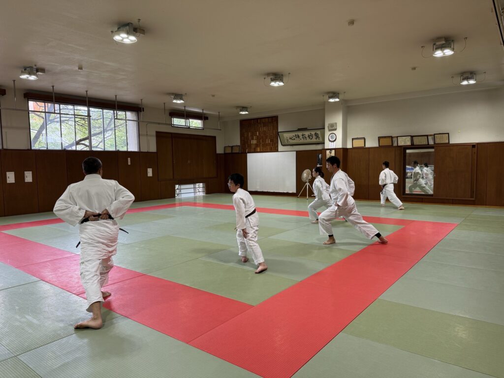 本日午前の稽古は、斜行、膝行法、臂力の養成(一)(二)からスタート。受身各種を行いました。