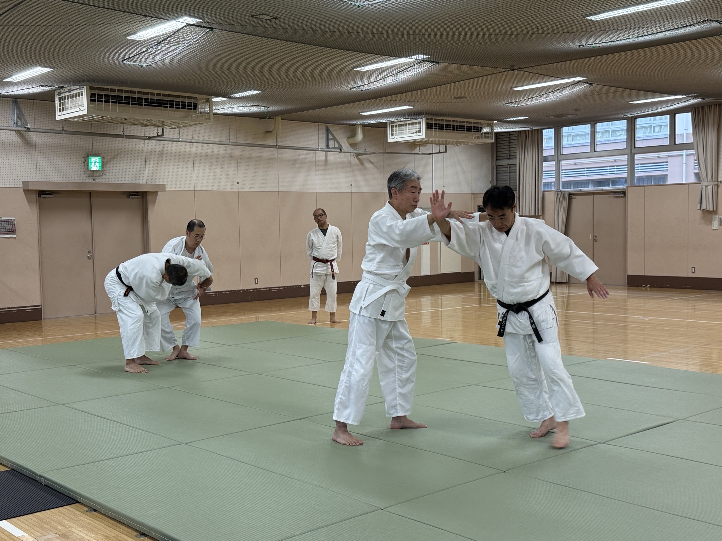 大人は、片手持ち側面入り身投げ(二)を行い、演武稽古。
