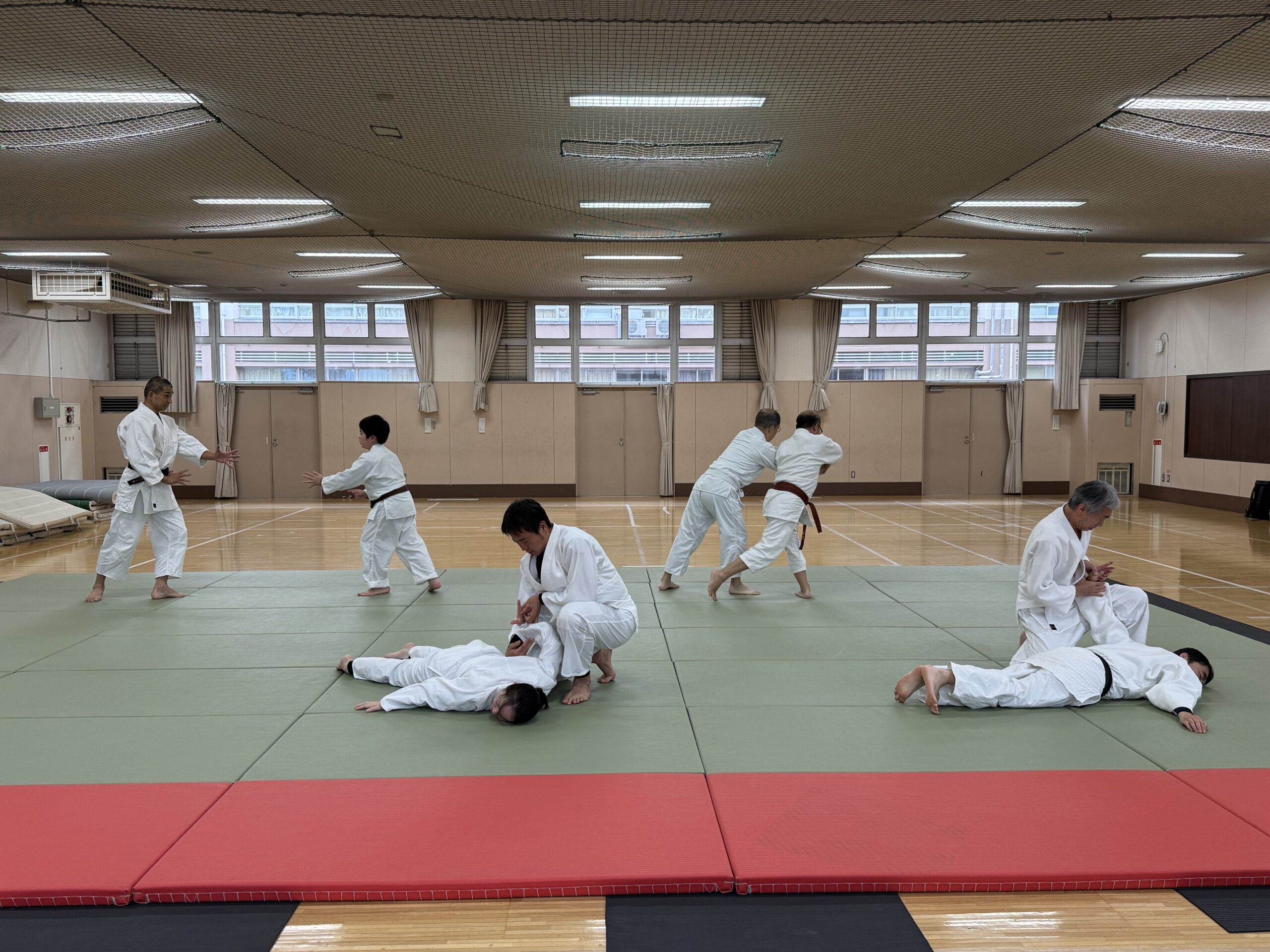 午後の稽古は、斜行、膝行法、臂力の養成(一)(二)からスタート。受身各種を行いました。