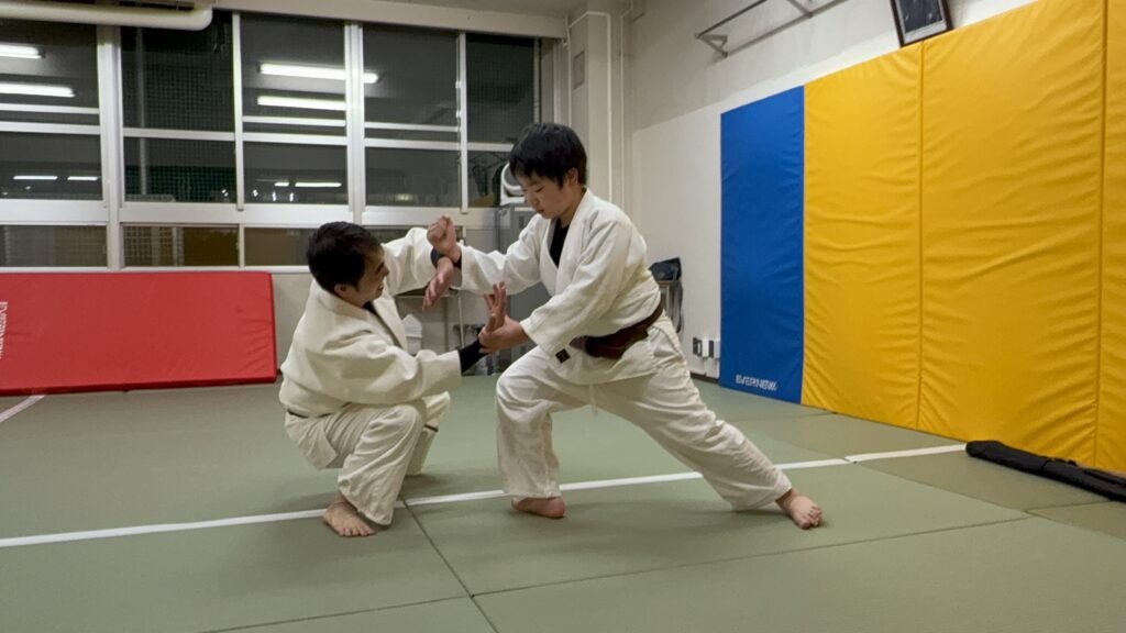 合気道みことでは、仕手(技をかける側)、受け(技をかけられる側)の動きを確認しながら稽古を行っております。型稽古を通し技の感覚を掴み、協力し合いながら上達を目指します。
