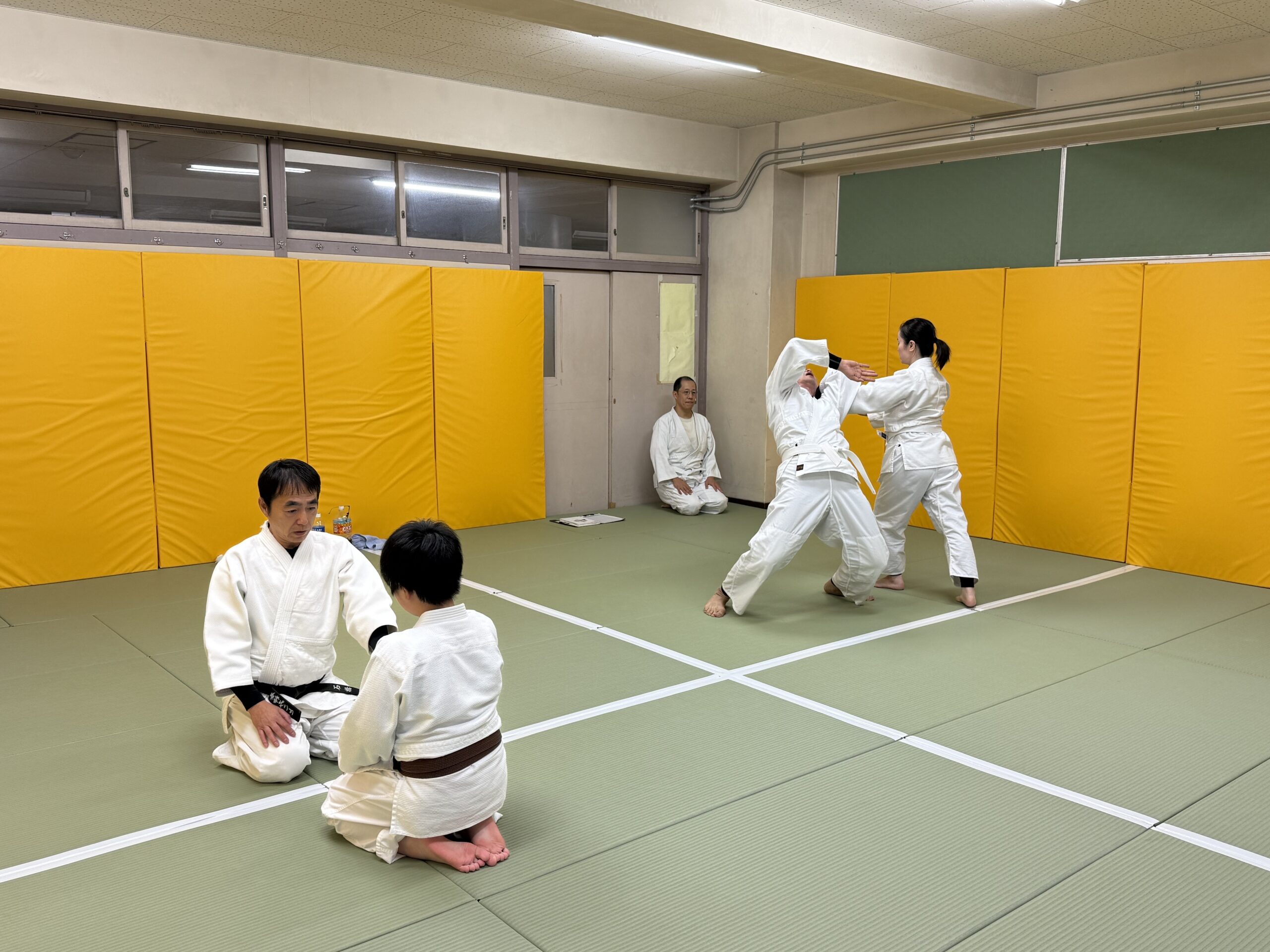 別れてそれぞれ稽古。途中、後技両手持ち一ヶ条抑え(一)のお手本を行いました。