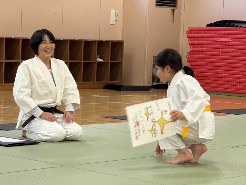 稽古終了後、ずっと渡せていなかったTちゃんへ、夏の審査の免状を。